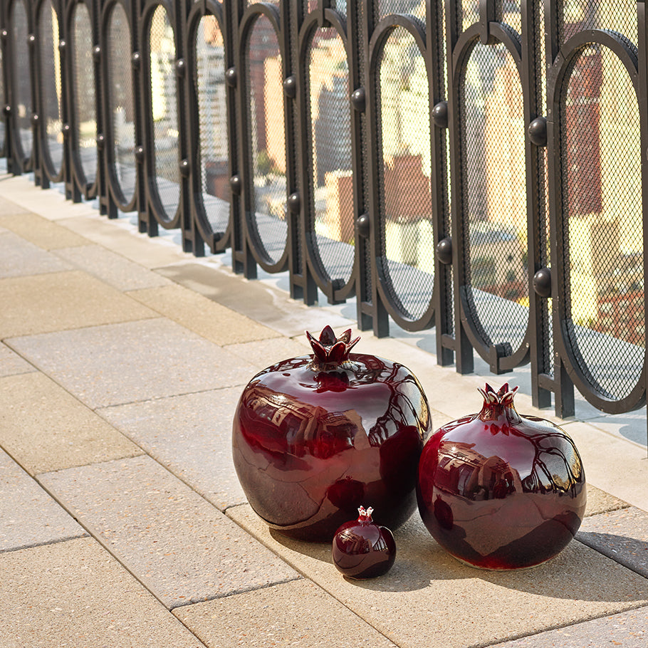 Porcelain. Indoor/Outdoor. Please note that Ambrosia sculptures are made of natural materials such as clay, organic pigments or metals and therefore unique. Each porcelain object has its own character and may vary slightly from the printed image. If used outdoors: UV resistant. Pollution: The fine dust in the air will wash into the fine fissure line of the glaze with rainwater, so the fissure lines may become visible. This is not material damage, and attributes to the beauty and patina of the object. Exterior Use Not Recommended in Temperatures Below Freezing.