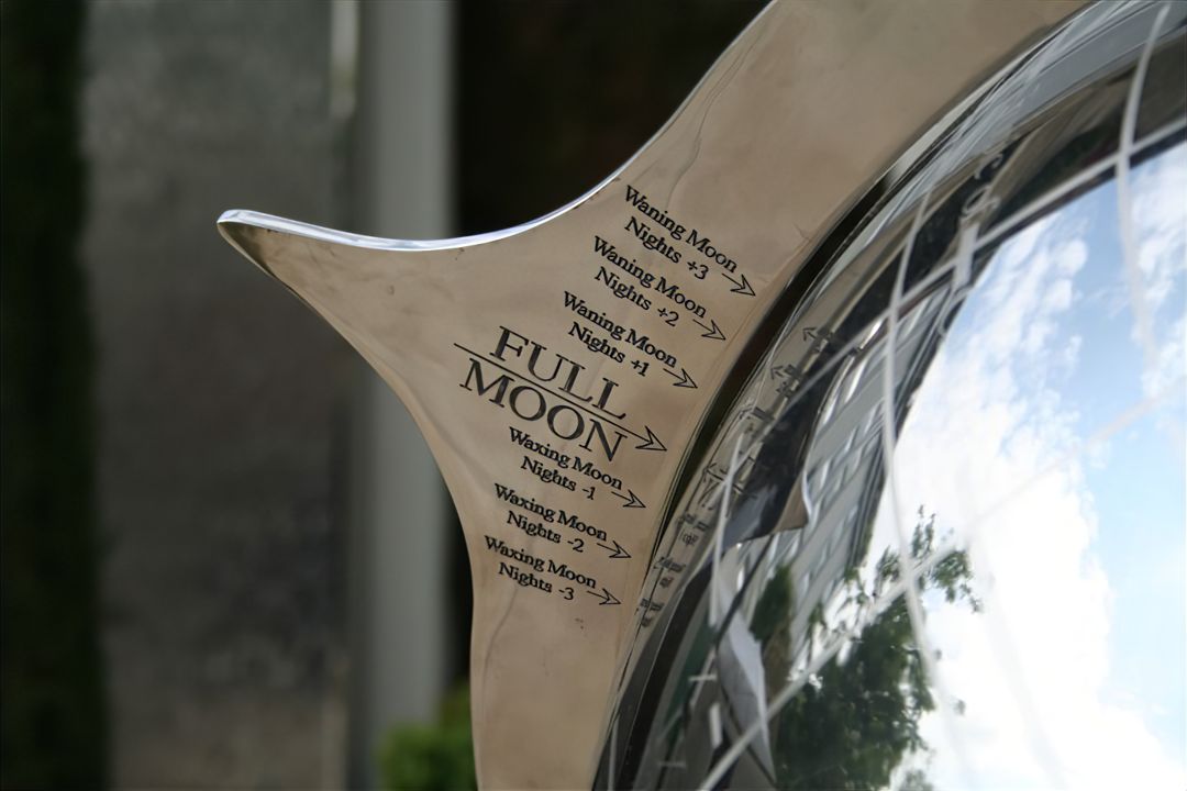 The globe’s graceful crescent-shaped gnomon, with its hidden internal counterweight, is adjusted until the shadow falls directly beneath it, allowing the time to be read against the hours engraved or etched into the surface. The romance of telling the time in a moonlit garden evokes an atmosphere of privacy and serenity. When used as a moon dial, it tells the time on the night of the full moon and for three or four nights before and after, as the moon waxes and wanes.