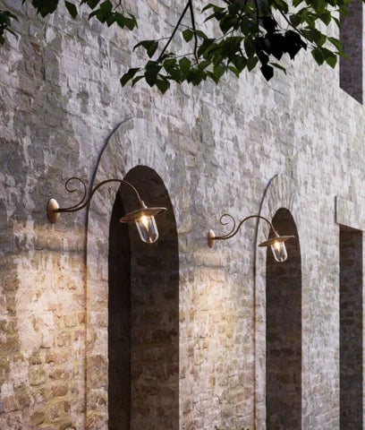 Barchessa Outdoor Wall Light made in Italy, is a minimalist and conceptual design made of brass and copper.