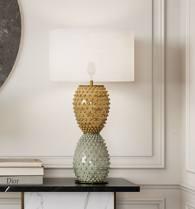 Cactus Table Lamp by Aromas Del Campo features a uniquely textured base resembling a cactus, paired with a sleek, minimalist shade that provides warm, ambient light. Its blend of organic shapes and contemporary materials creates a captivating focal point, perfect for modern and eclectic interiors.