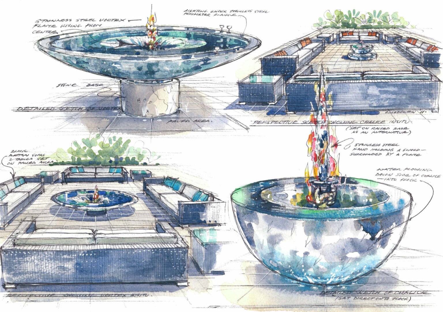 The Fire Chalice is a variation on the original Chalice water feature, a sophisticated centrepiece marrying the classical elements of fire and water. With fiery brilliance adorning the cascading water, the Fire Chalice illuminates every space with a captivating spectacle of light and movement, day and night.