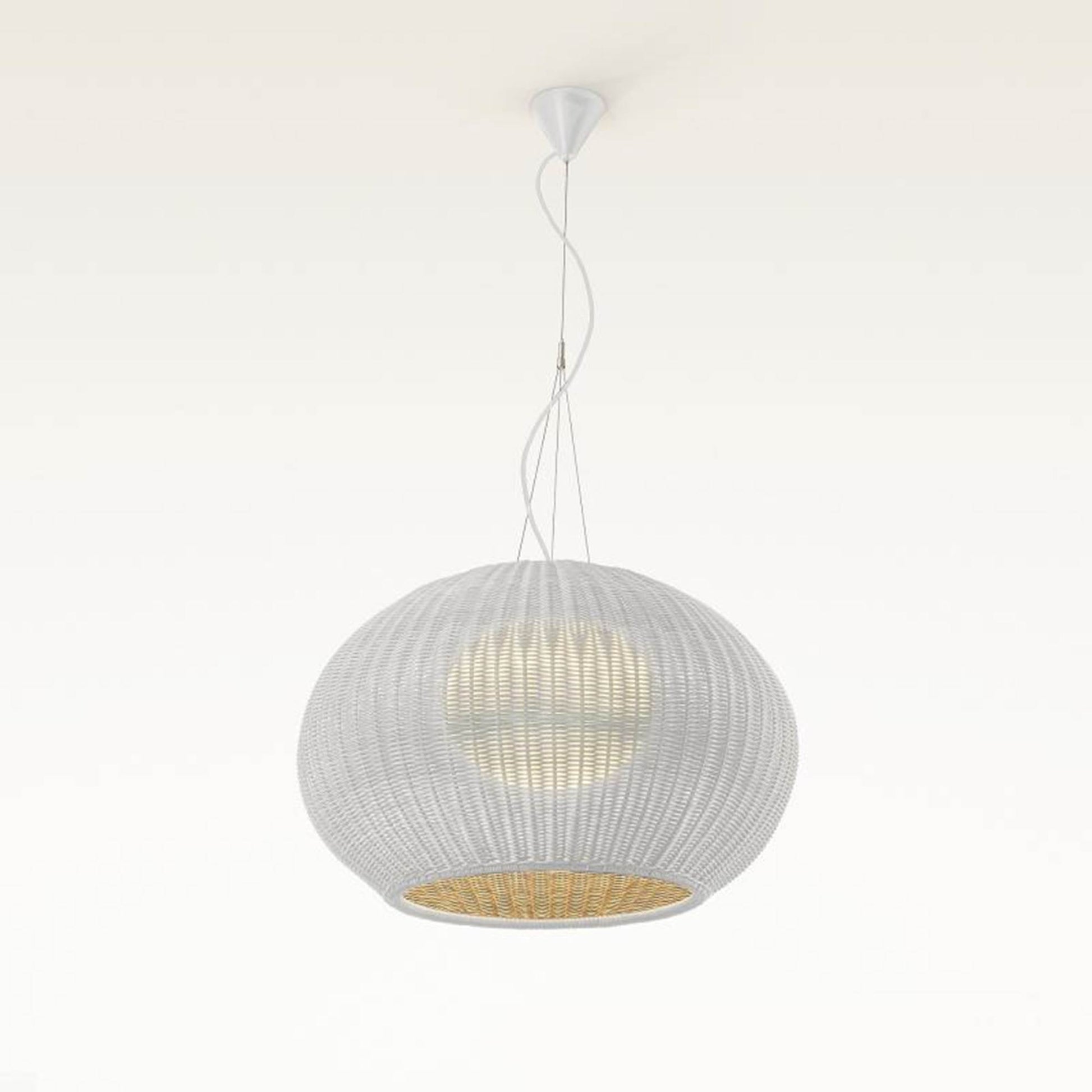 The Garotas are part of a diverse collection of outdoor lamps that create unique environments and share a common concept: shade in the form of a sea urchin. The shades are hand woven with recyclable and non-toxic synthetic polyethylene fiber, while the light source is protected by a UV-resistant polyethylene globe.