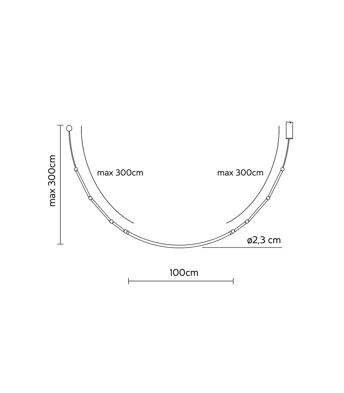 Leda Curve Pendant Light by Karman is a necklace of light, composed of spheres and cylinders in anodised aluminium and with a flexible diffuser that lends itself to a variety of arrangements. A small metal slot allows you to change the layout and shape of your choice.