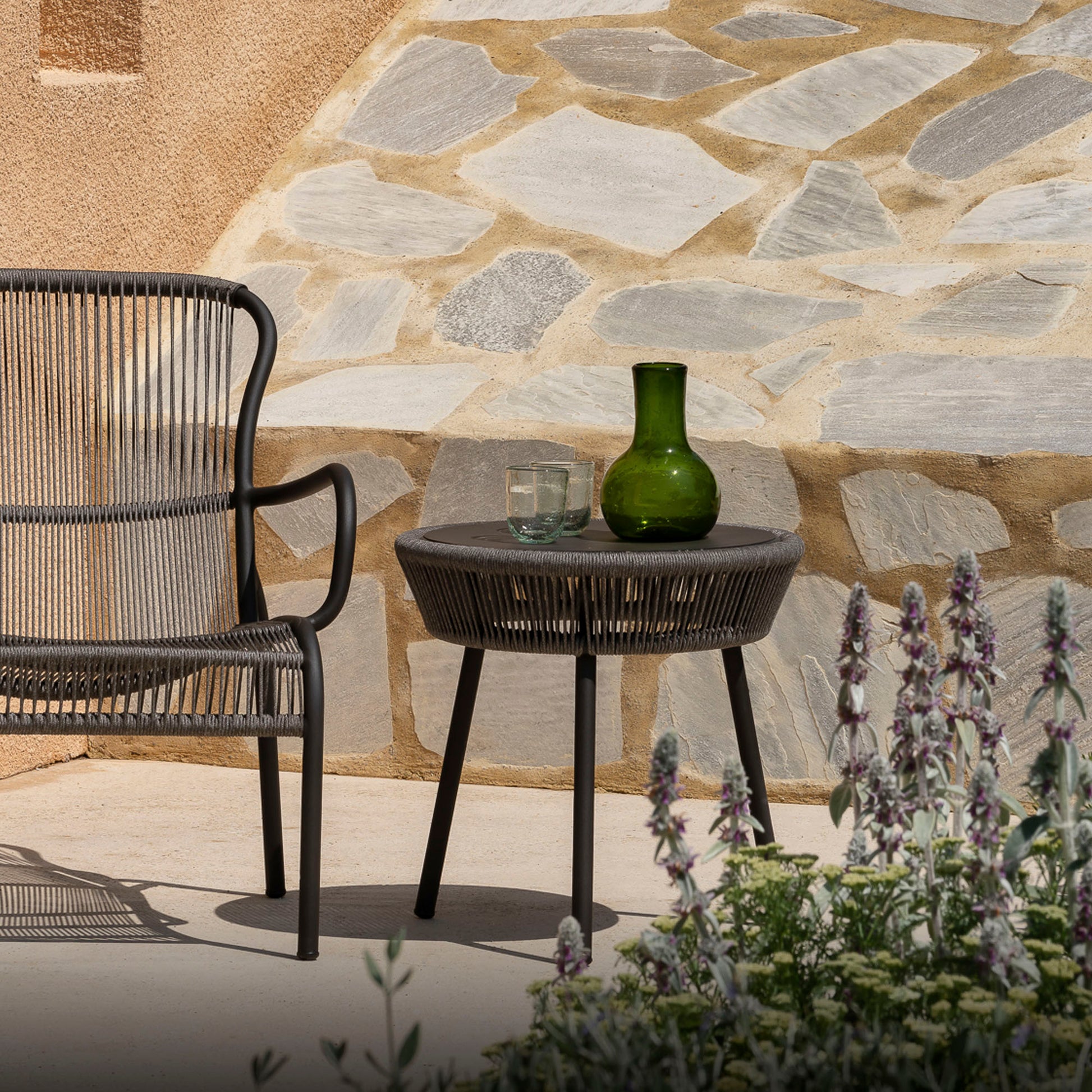 The Loop side table is a practical, lightweight rope table available in Black, Terracotta, Moss, Fossil Grey, and Dunge.