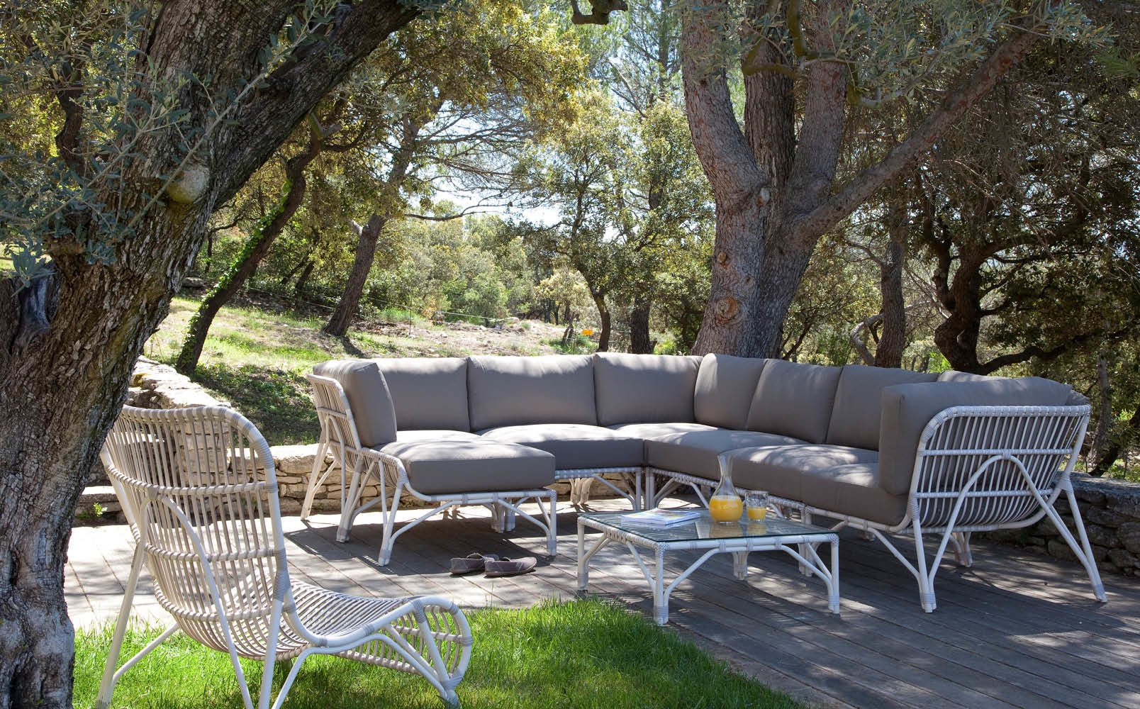 Create your own perfect outdoor lounge spot with the Lucy modular center and corner. Available color: Off-white.