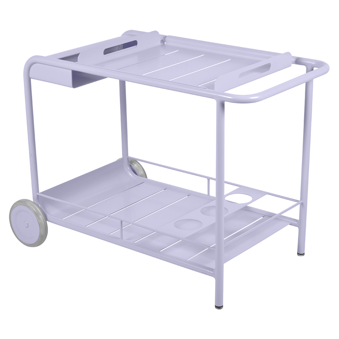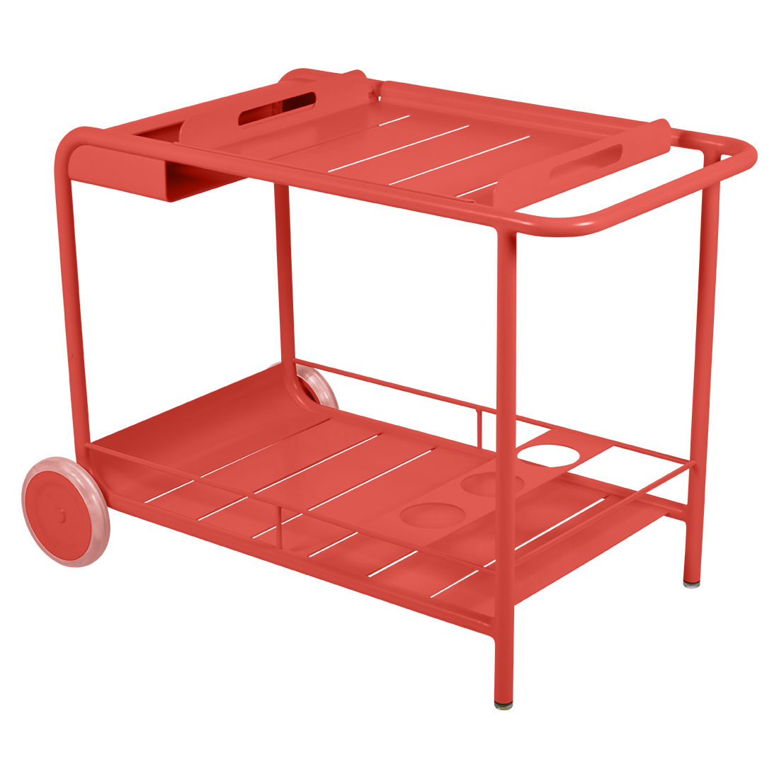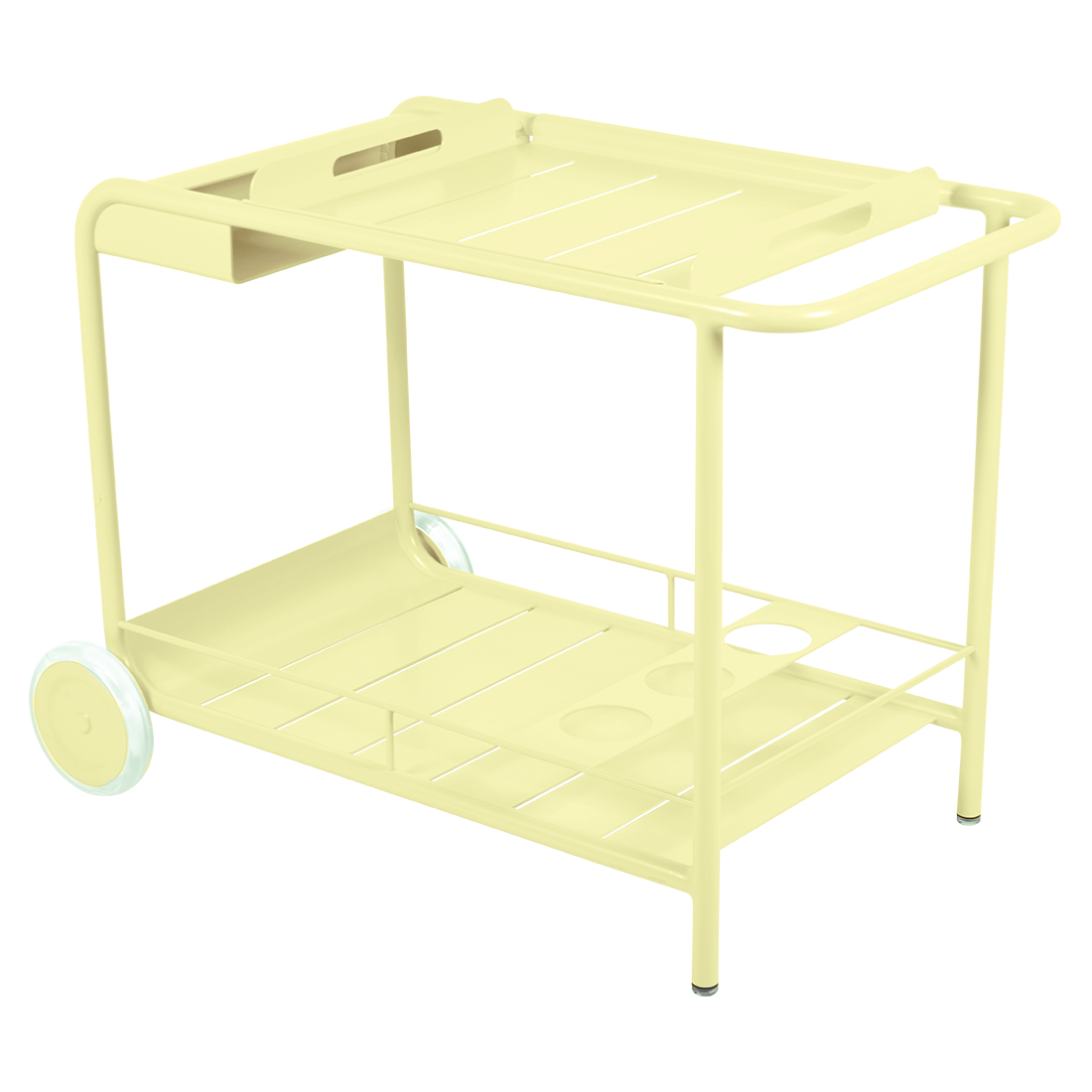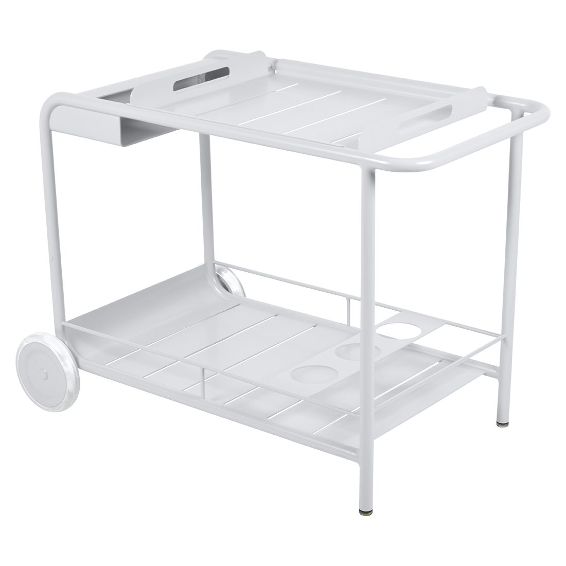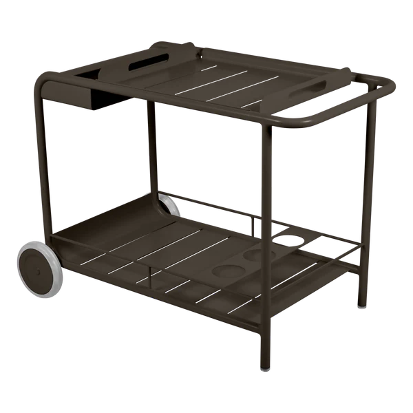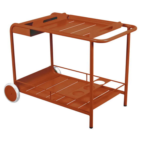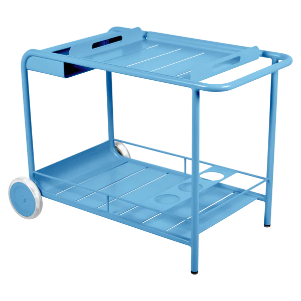 Entertain in style with the Luxembourg Bar trolley. A wonderful, addition to any outdoor space be it a terrace, garden or poolside. It has a removable tray for drinks and can be dressed up for those special champagne occasions! Ideal for wheeling from the kitchen to the barbecue or using as a mini bar inside. A favourite of designers, the Luxembourg Bar trolley is fabulous in a pop of colour and you can have fun selecting from a stunning palette of colours.