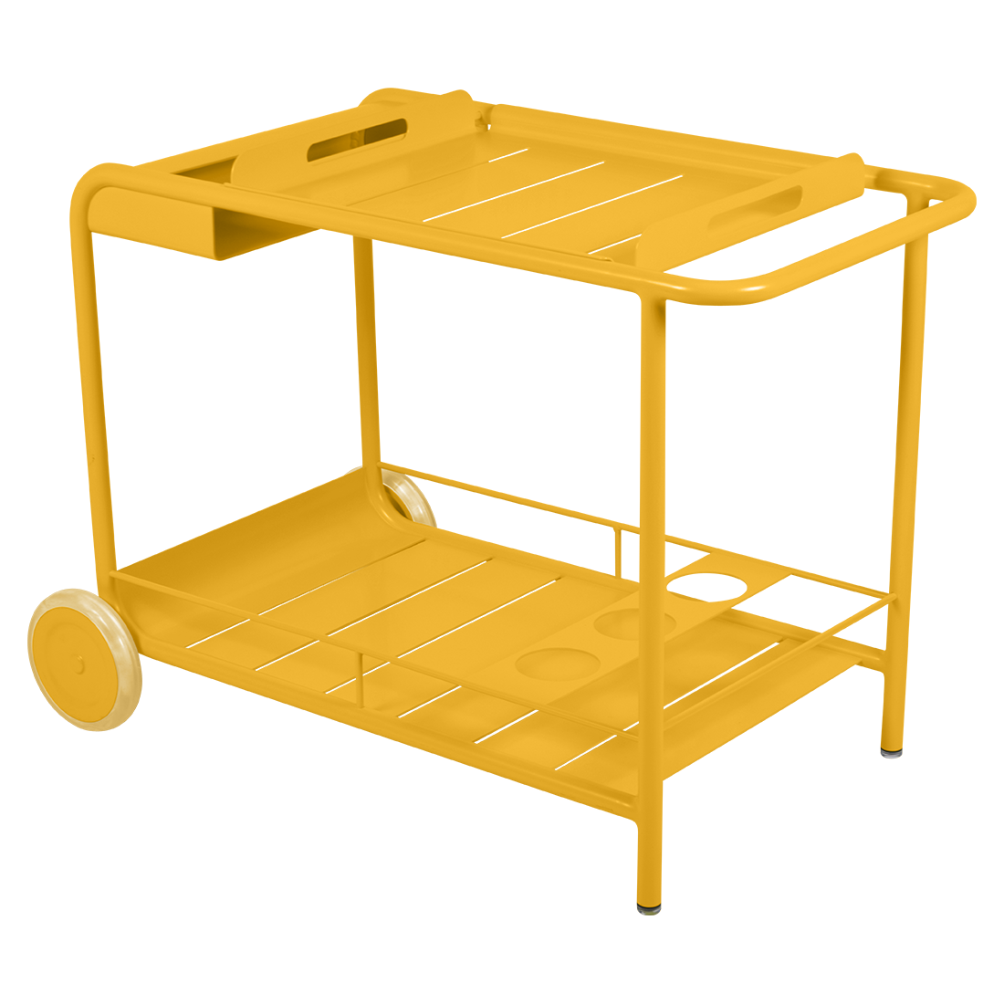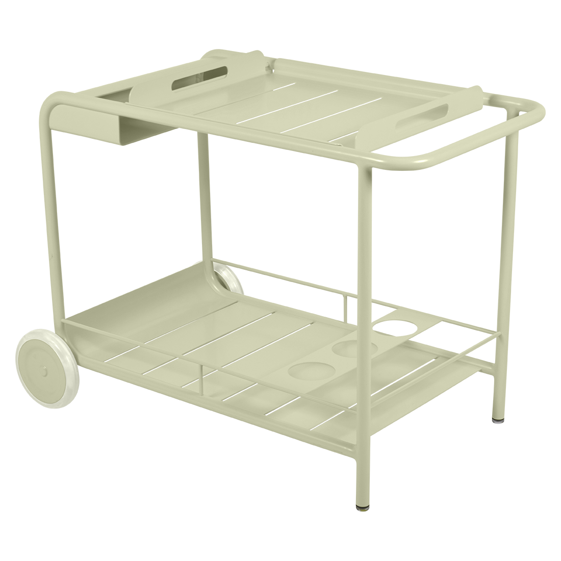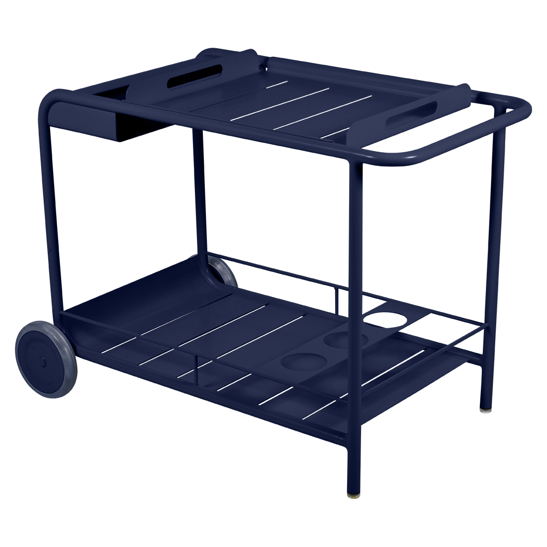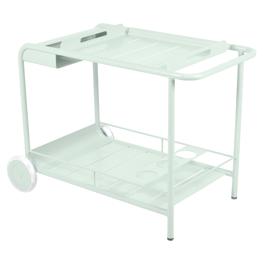 Entertain in style with the Luxembourg Bar trolley. A wonderful, addition to any outdoor space be it a terrace, garden or poolside. It has a removable tray for drinks and can be dressed up for those special champagne occasions! Ideal for wheeling from the kitchen to the barbecue or using as a mini bar inside. A favourite of designers, the Luxembourg Bar trolley is fabulous in a pop of colour and you can have fun selecting from a stunning palette of colours.
