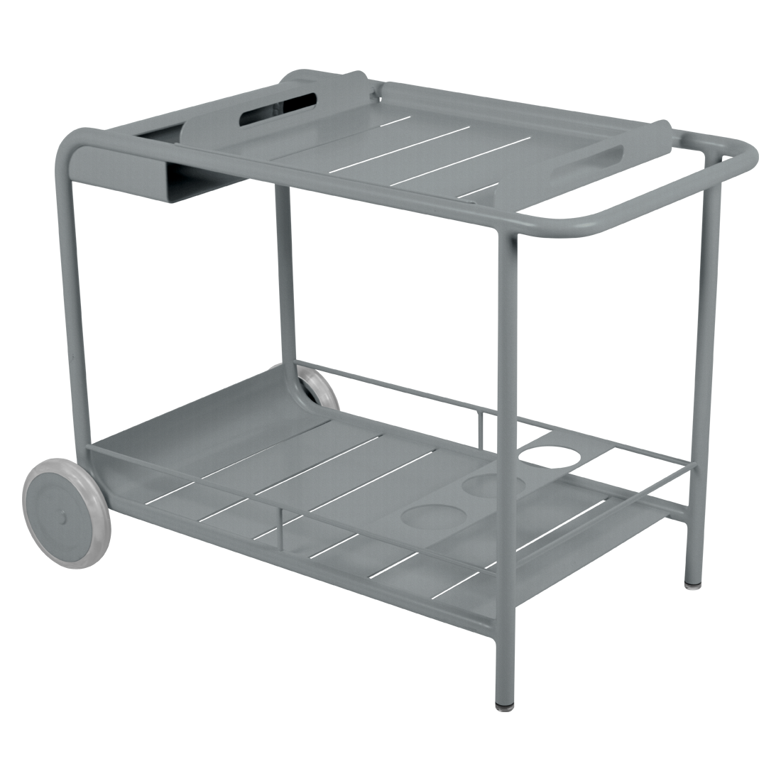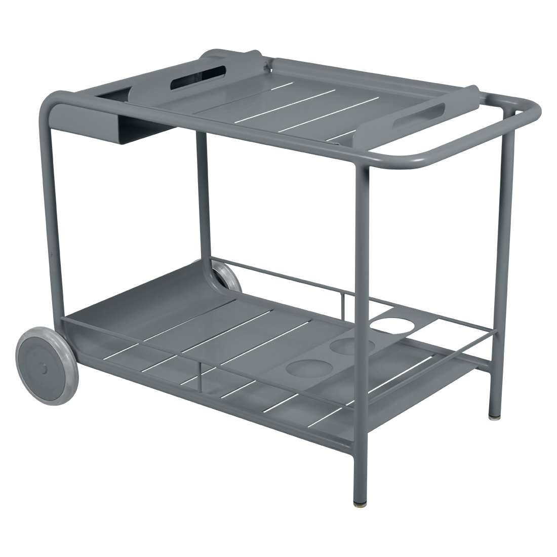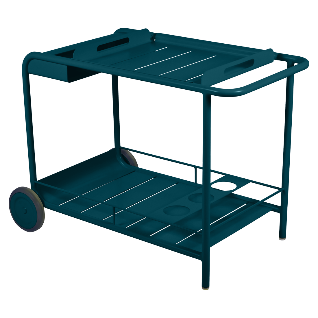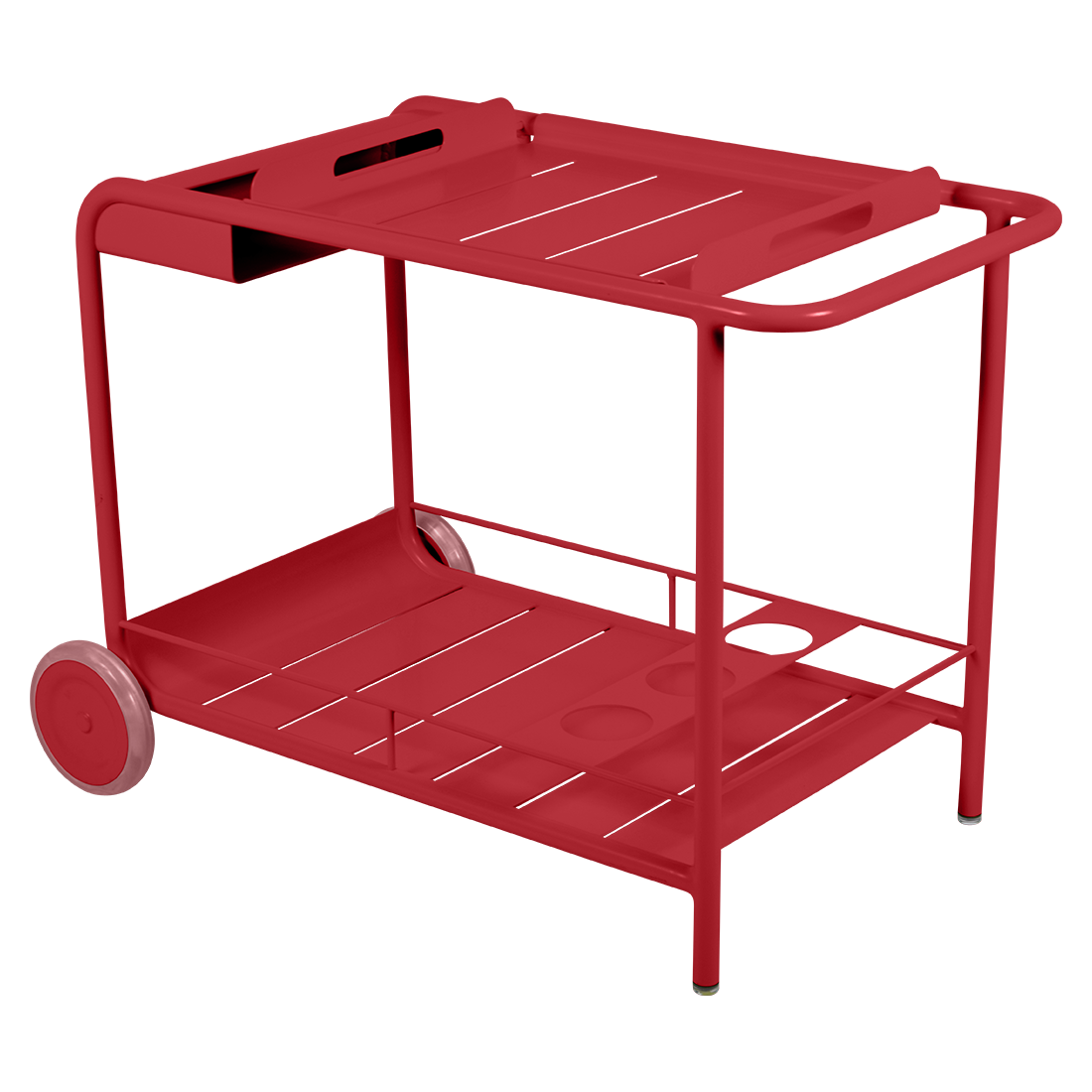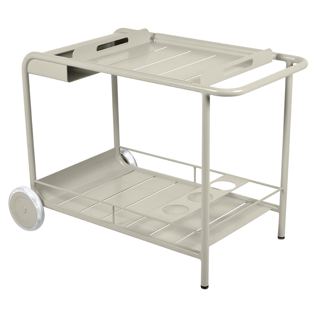Entertain in style with the Luxembourg Bar trolley. A wonderful, addition to any outdoor space be it a terrace, garden or poolside. It has a removable tray for drinks and can be dressed up for those special champagne occasions! Ideal for wheeling from the kitchen to the barbecue or using as a mini bar inside. A favourite of designers, the Luxembourg Bar trolley is fabulous in a pop of colour and you can have fun selecting from a stunning palette of colours.