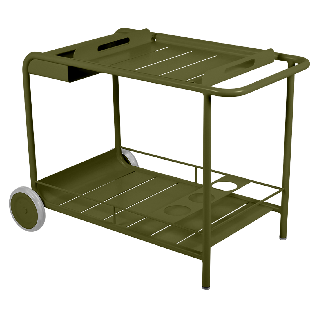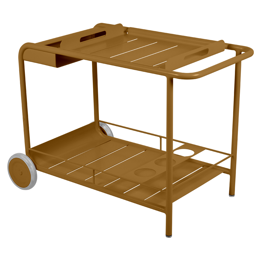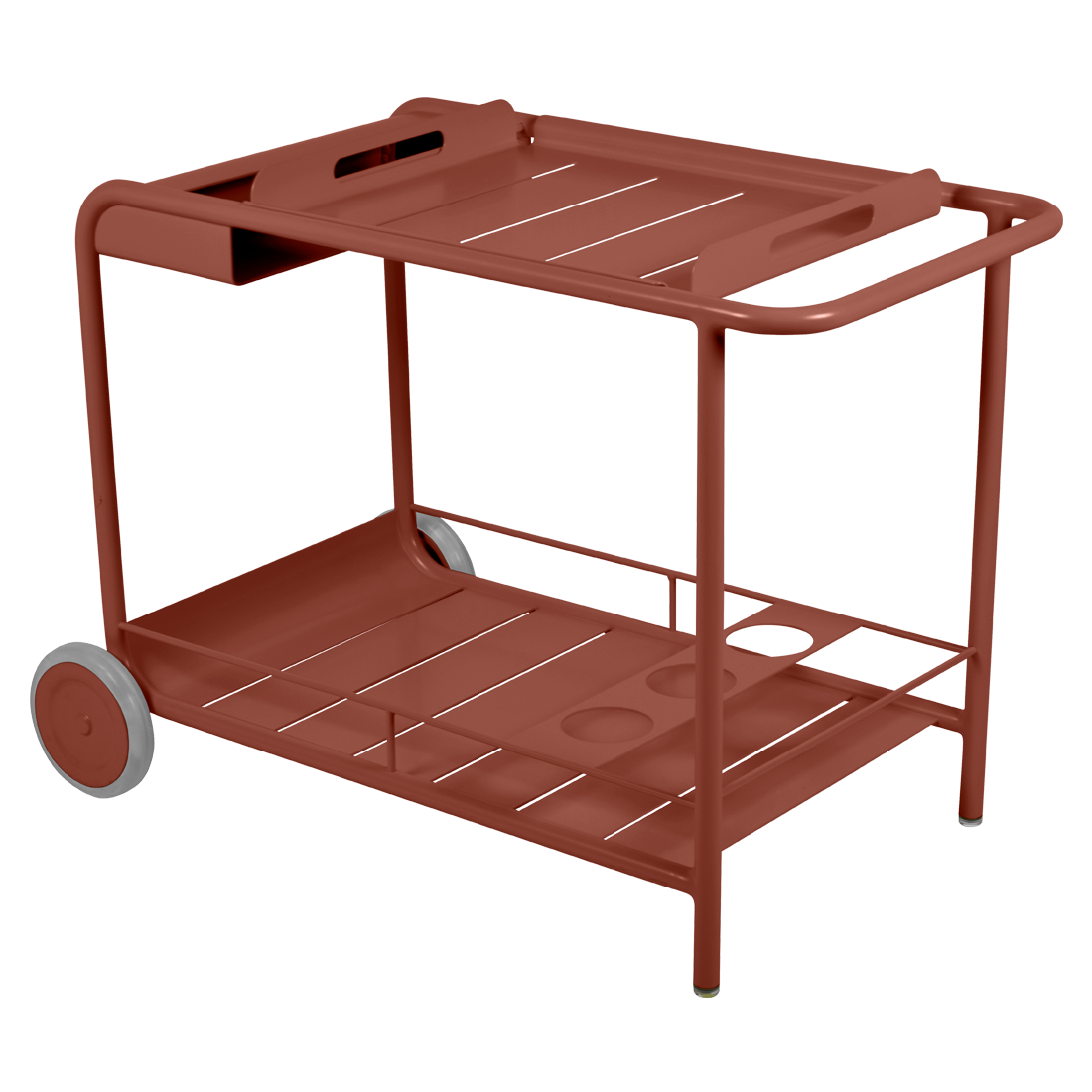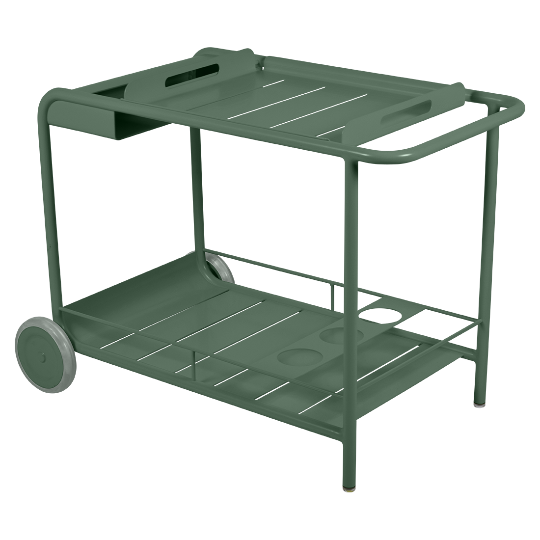 Entertain in style with the Luxembourg Bar trolley. A wonderful, addition to any outdoor space be it a terrace, garden or poolside. It has a removable tray for drinks and can be dressed up for those special champagne occasions! Ideal for wheeling from the kitchen to the barbecue or using as a mini bar inside. A favourite of designers, the Luxembourg Bar trolley is fabulous in a pop of colour and you can have fun selecting from a stunning palette of colours.