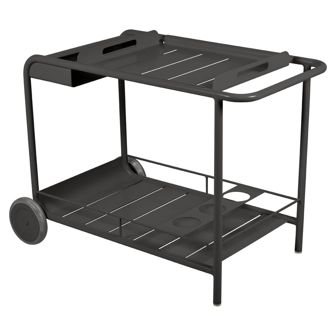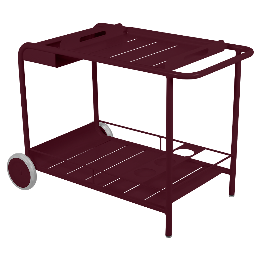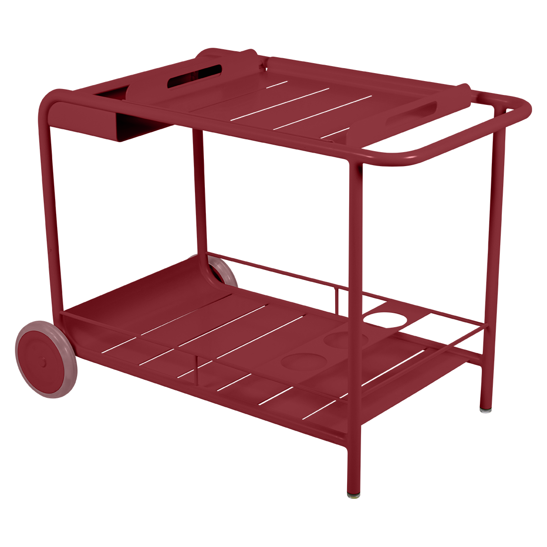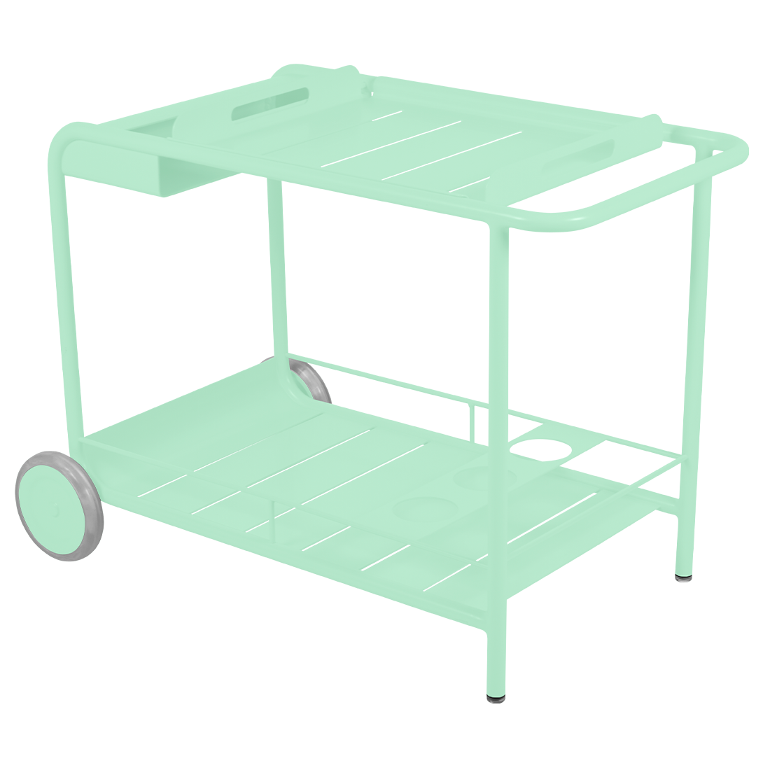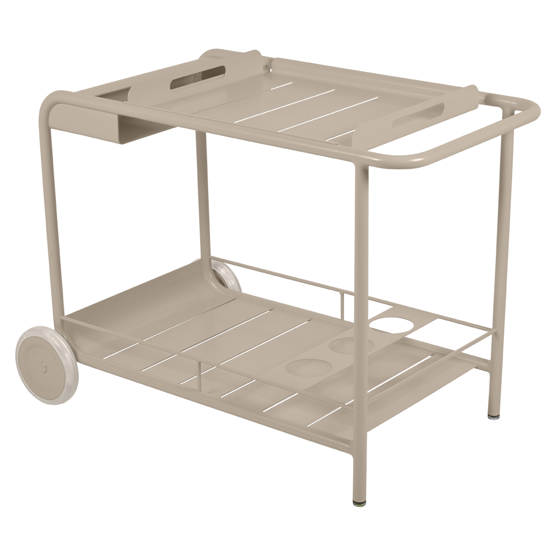 Entertain in style with the Luxembourg Bar trolley. A wonderful, addition to any outdoor space be it a terrace, garden or poolside. It has a removable tray for drinks and can be dressed up for those special champagne occasions! Ideal for wheeling from the kitchen to the barbecue or using as a mini bar inside. A favourite of designers, the Luxembourg Bar trolley is fabulous in a pop of colour and you can have fun selecting from a stunning palette of colours.