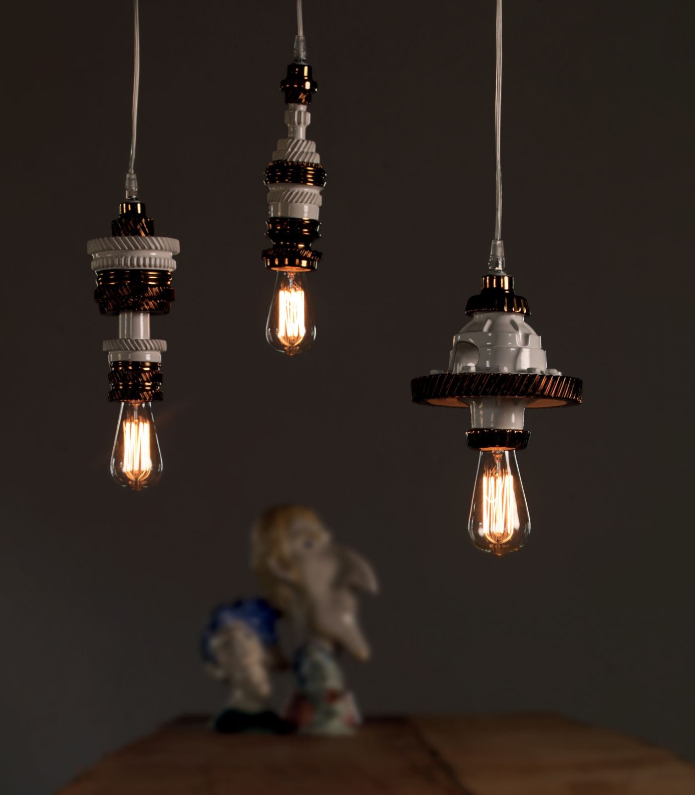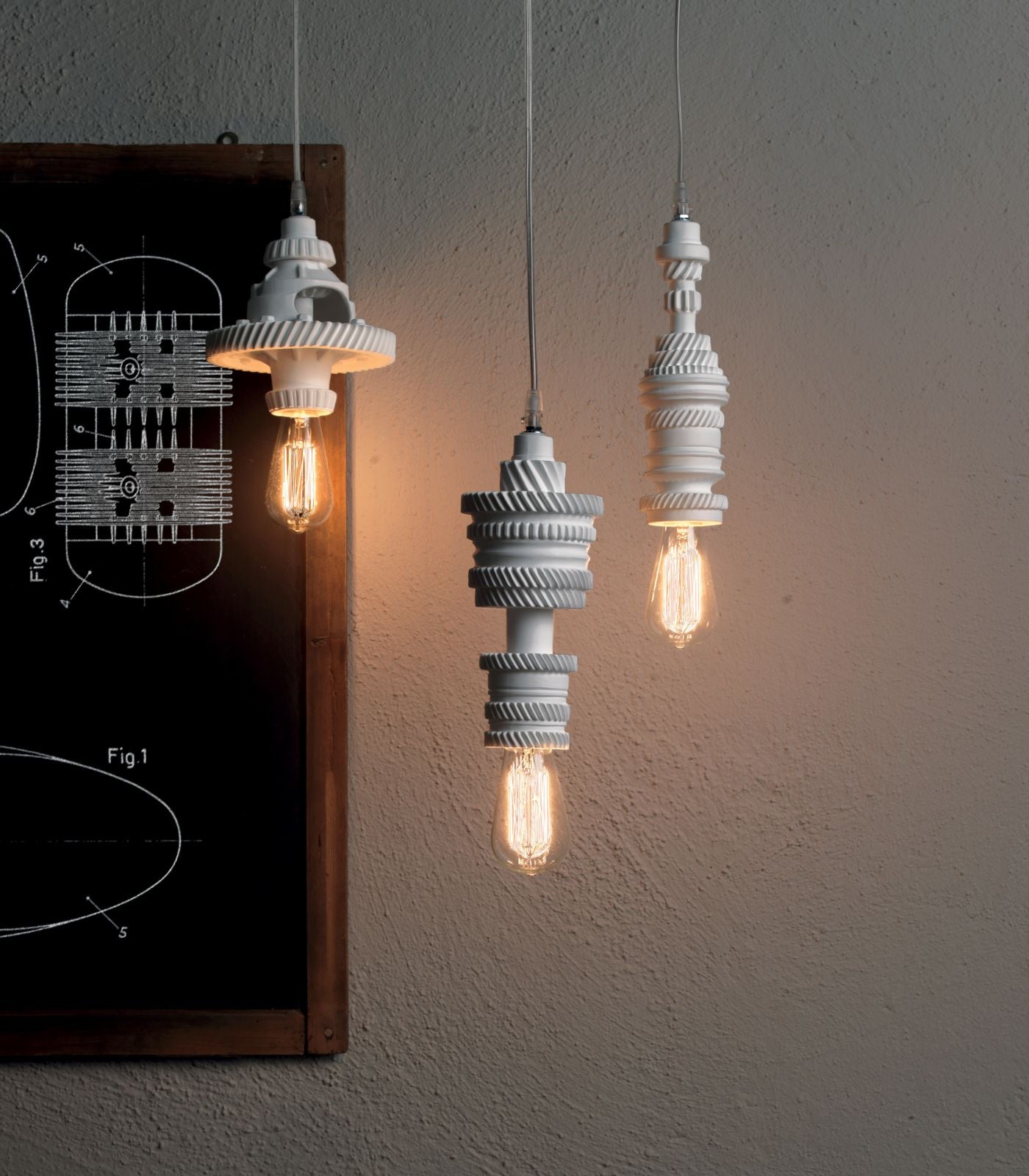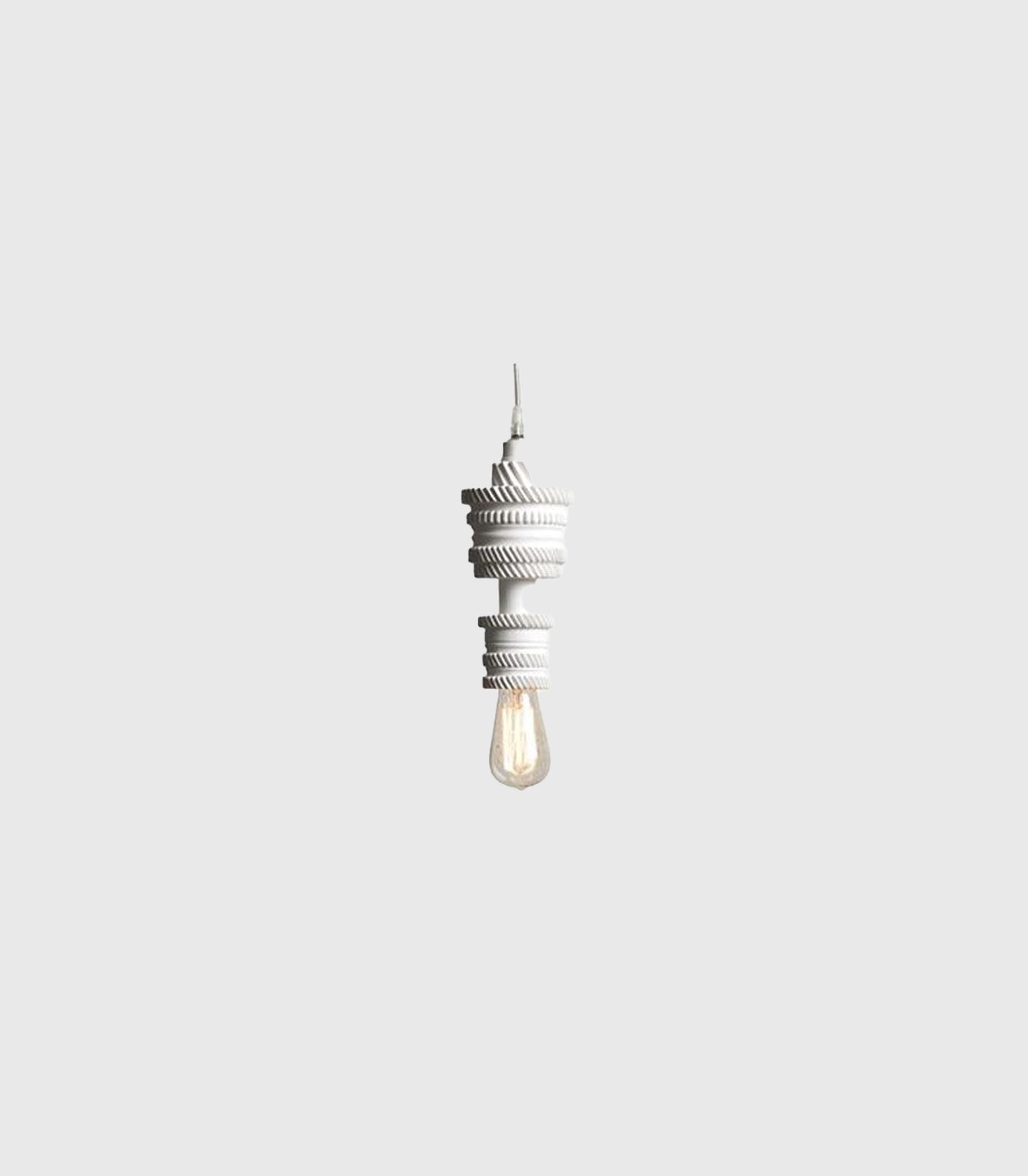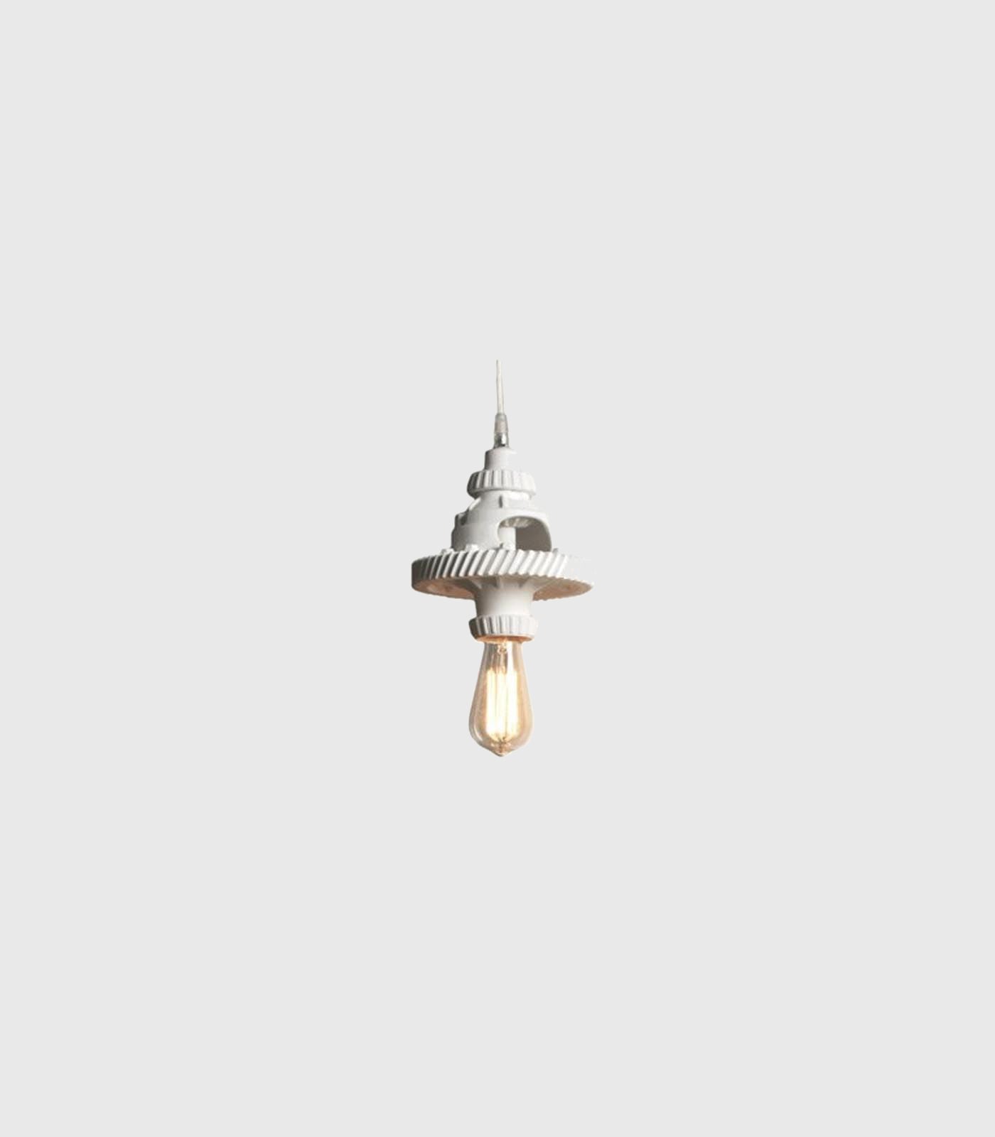 The Mek Pendant Light, designed by Karman, embodies a futuristic aesthetic with reinvented shapes and objects transformed into a radiant lighting fixture. Its intricately crafted forms can be chosen from three different shapes and three different finishes.