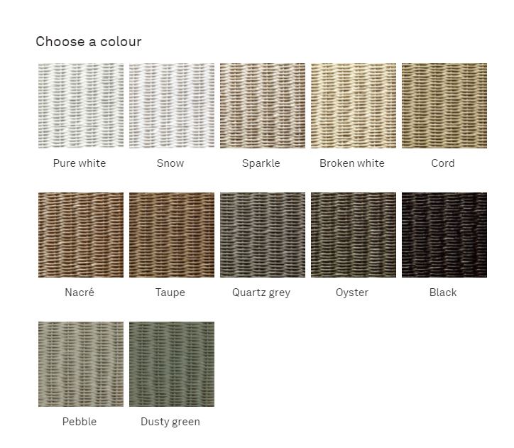 Materials lloyd Loom weave | aluminum frame cushion removable cover | filling : 4 cm High Resilience foam| cushion with piping and nylon glides
