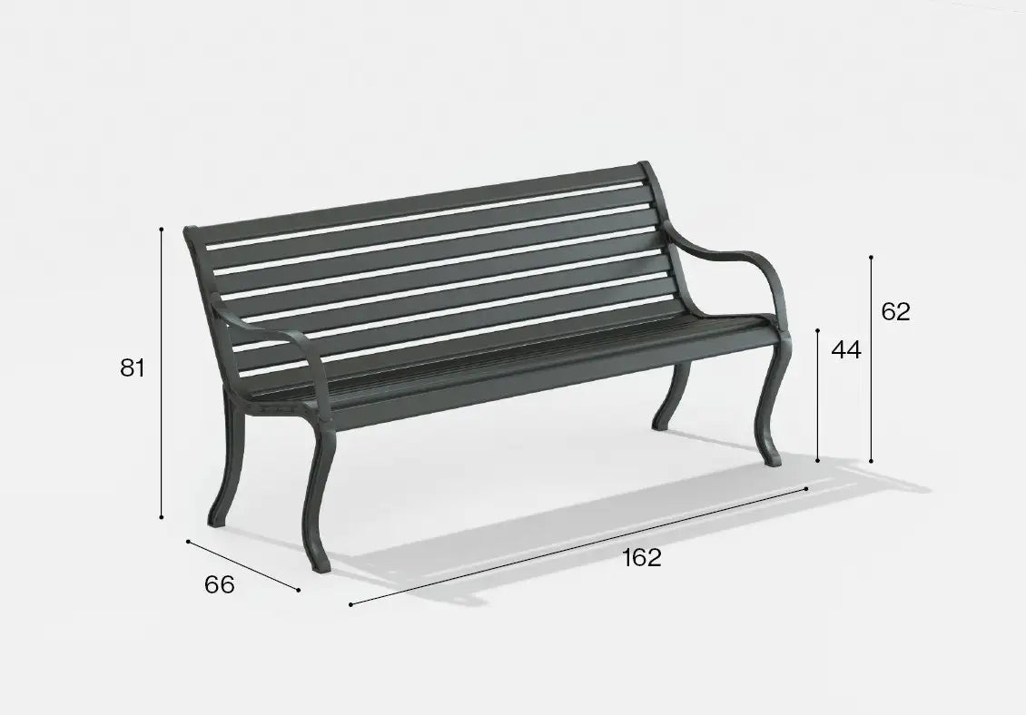 A classic and beautifully constructed aluminium bench available as a 2-seater and 3-seater bench and in the following colours: Black, White, Maracuja, and Iron grey.