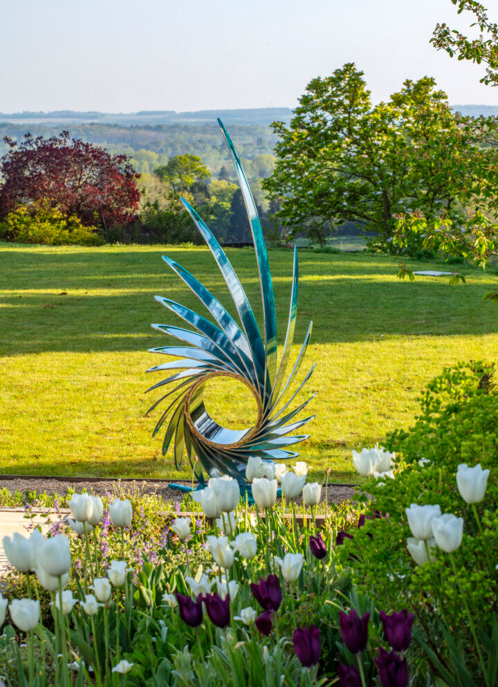 Orbis features morphing blades that give a sense of recurring energy, endowing the sculpture with an intrinsic strength and boldness. Its cycle of growing and tumbling fluid mass suggests the majesty of an ocean wave.