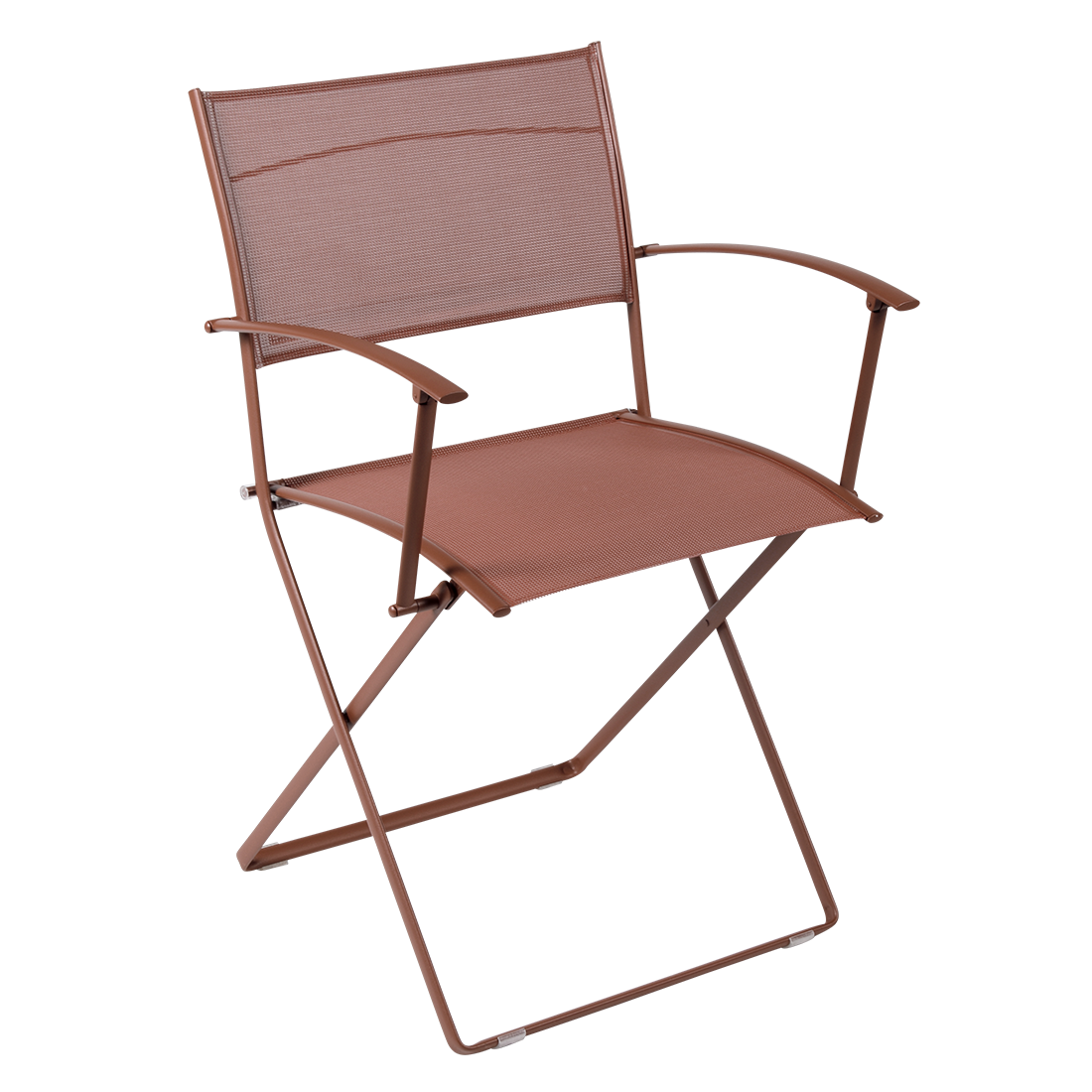 The Plein air armchair is a very stylish, contemporary, metal folding chair that will add life and fun to many a table. The backrest and seat is made from high quality Outdoor Technical Fabric (OTF) which provides exceptional comfort. An ideal choice for holiday houses in the country, verandahs and balconies, the Plein air armchair is lightweight, stable and easily carried inside and out. Team it with Plein air chairs to create a delightful dining setting, perfect also with smaller tables for a tete-a-tete with a friend. Available in an array of inviting colours.