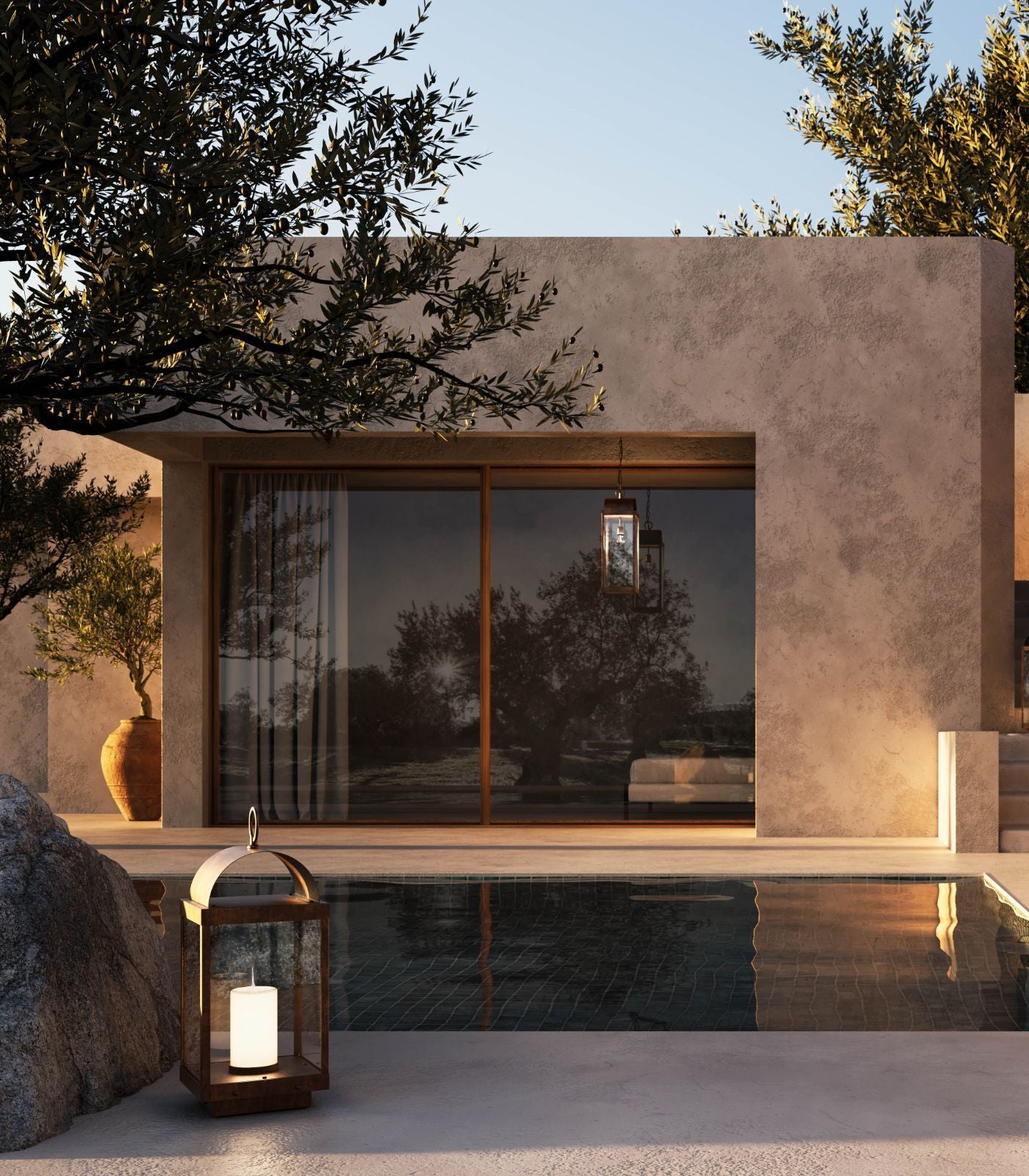 Made of brass and transparent glass, the Lanterne Collection reinterprets contemporary-styled lighting with the charm of a candlelit atmosphere.